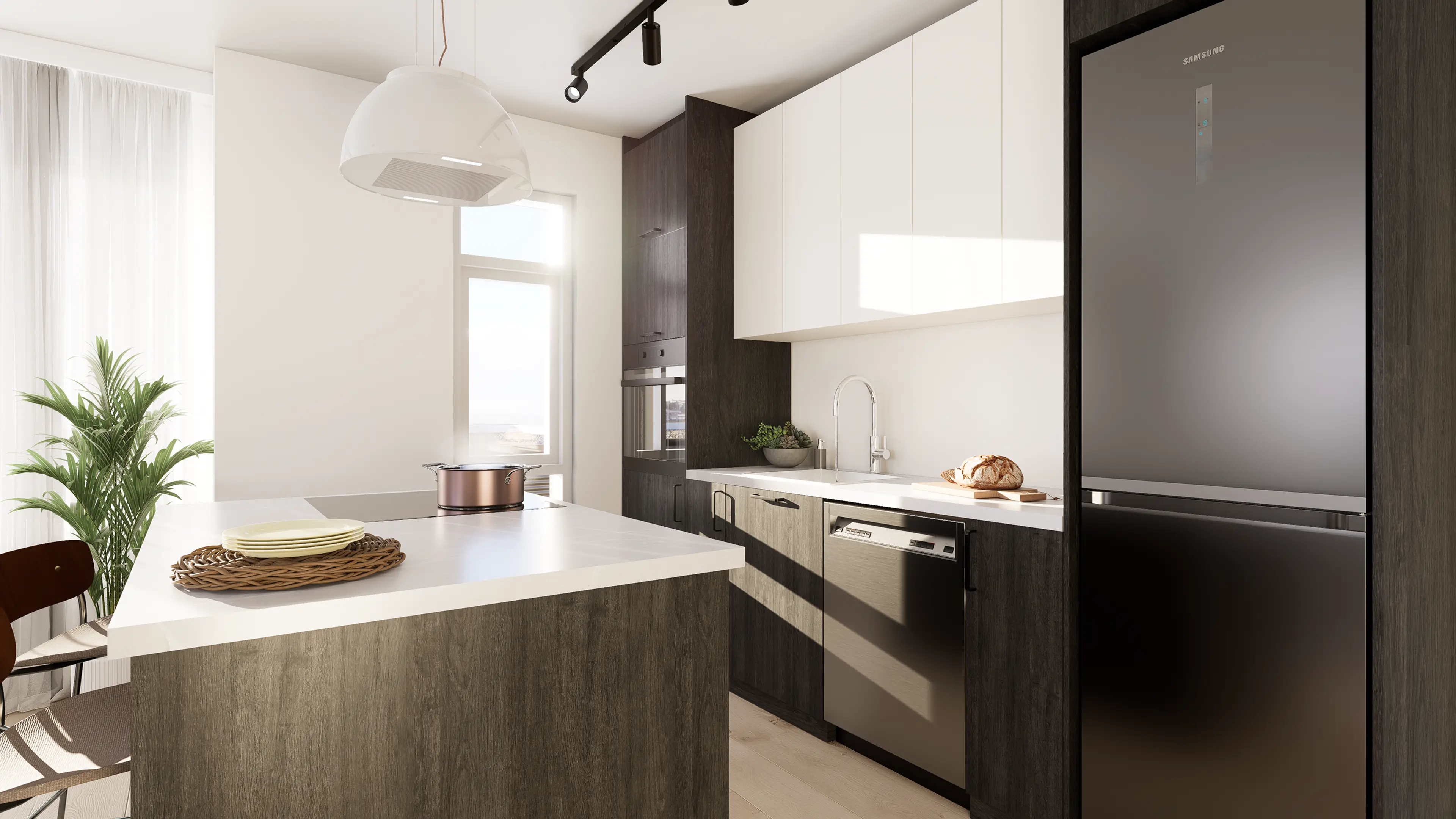 Húsin ramma inn skjólgóðan og fallegan innigarð sem gefur hverfinu notalega og friðsæla heild. Garðurinn er yfir bílakjallara en í miðju hans er stórt ljósop með gróðri og gegndræpu yfirborði sem tryggir góða fráveitu og vistvæna lausn.