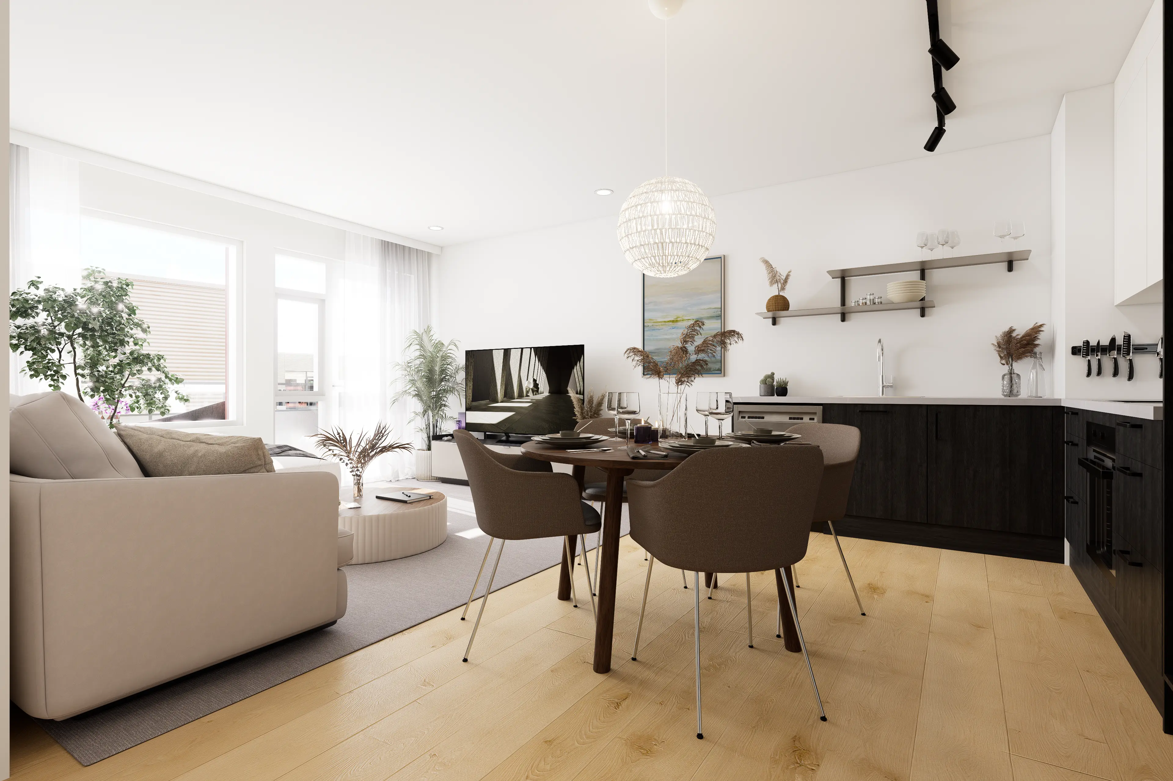 Garðurinn verður án trjáa og blóma við afhendingu, þannig að nýir íbúar geta mótað hann að sínum smekk með tíma. Hér skapast sameiginlegt rými þar sem börn geta leikið sér, fullorðnir notið útiveru og nágrannatengsl dafnað.