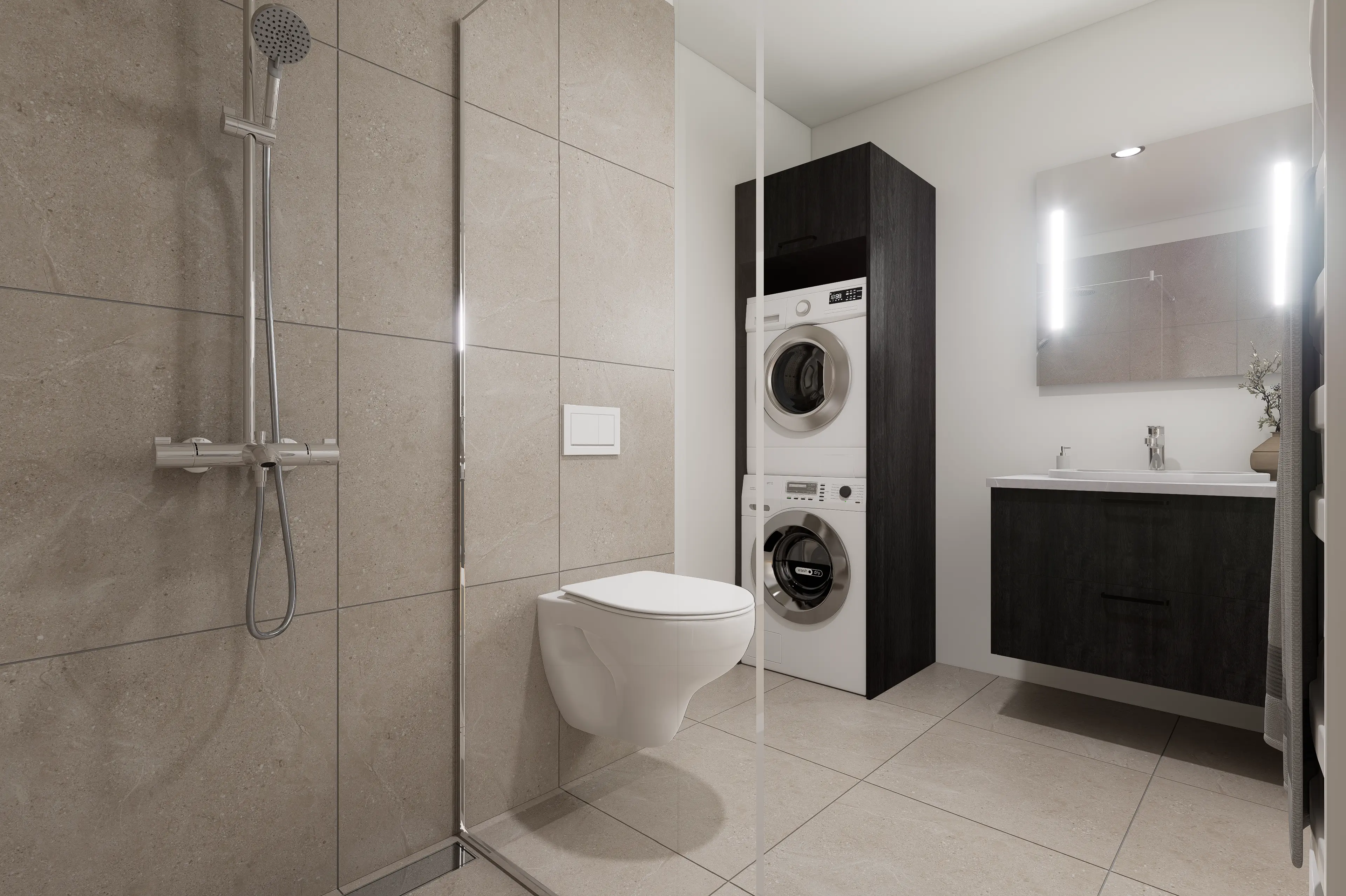 Undir húsunum er rúmgóður bílakjallari með 62 sérmerktum stæðum. Innkeyrsla er með fjarstýrðri hurð og beint innangengt úr kjallaranum í stigahús og lyftur.